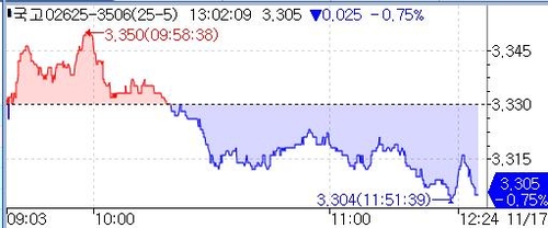 17일 채권시장에 따르면 이날 진행된 국고채 10년물 입찰에서 8천억원은 가중평균금리 3.283%에 낙찰됐다.