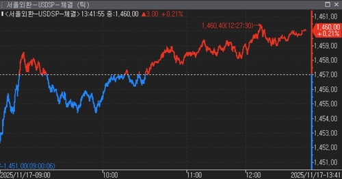 17일 서울 외환시장에서 달러-원 환율은 오후 1시41분 현재 전장대비 3.00원 오른 1,460.00원에 거래됐다.