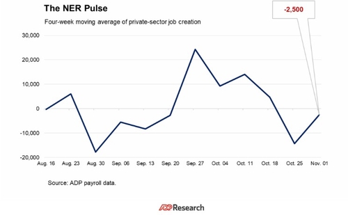 18일(현지시간) 미간 고용 정보업체 ADP에 따르면 이달 1일을 끝으로 4주 동안, 미국의 민간 고용 예비치는 주(週) 평균 2천500명 감소한 것으로 나타났다.