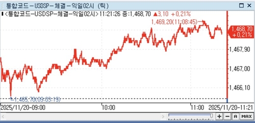 20일 서울 외환시장에서 달러-원 환율은 오전 11시 15분 현재 전일대비 3.30원 오른 1,468.90원에 거래됐다.