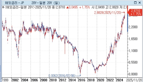 (서울=연합인포맥스) 권용욱 기자 = 일본 장기 국채 금리가 초장기물 중심으로 계속해서 오르고 있다.