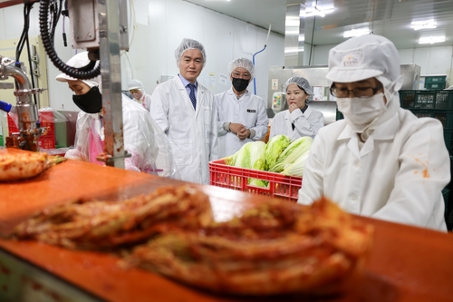 (세종=연합인포맥스) 박준형 기자 = 관세청이 국산 김치 제조업체와 함께 K-푸드 핵심 품목인 김치 수출 확대 전략과 수입산 김치의 국산 둔갑 행위에 대한 단속 방안을 논의했다.