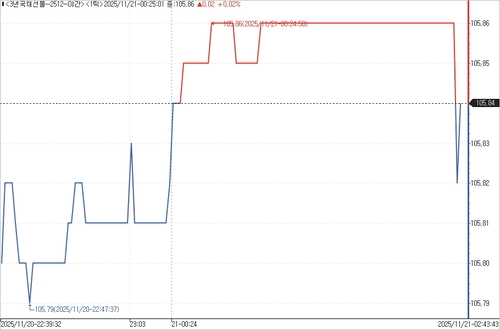 21일 서울채권시장에 따르면 3년 국채선물은 야간 거래에서 전일 주간 거래 종가 대비 7틱 오른 105.84에 마감됐다. 외국인은 40계약 순매수했고, 개인은 40계약 순매도했다.