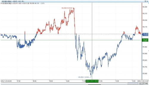 그러나 달러-엔 환율은 오전 장 중반을 지나면서 하락 전환한 뒤 0.28%까지 낙폭을 키워 한때 155.655엔을 기록했다.