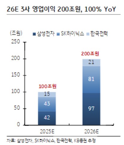내년 코스피가 사상 최대 영업이익을 기록할 것으로 전망되는 가운데 삼성전자, SK하이닉스, 한국전력의 기여도가 70%를 차지할 것이라고도 기대했다.