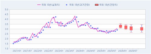 김명실 iM증권 연구원은 "국고채 10년물 적정 밴드는 3.10~3.40%로 보고 있으며, 현재 밴드 내 중간 수준을 유지 중이다"며 "내년부터는 다시 재정 및 공급 이슈가 부각될 수 있다는 점에서 상황에 따라 밴드 상단 부근까지 무리 없이 열릴 수 있어서, 금리 상방 리스크 경계 필요한 시기"라고 설명했다.