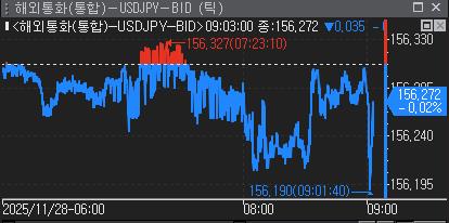 연합인포맥스 통화별 현재가(화면번호 6416)에 따르면 오전 9시 2분 현재 달러-엔 환율은 전장보다 0.05% 밀린 156.233엔에 거래됐다.