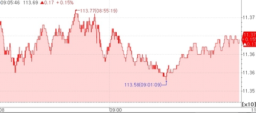 10년 국채선물은 19틱 상승한 113.71이었다.