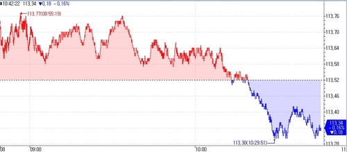 10년 국채선물은 15틱 하락한 113.37이었다.