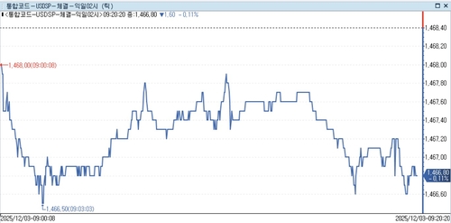 3일 서울 외환시장에서 달러-원 환율은 오전 9시 15분 현재 전일대비 1.40원 내린 1,467.00원에 거래됐다.