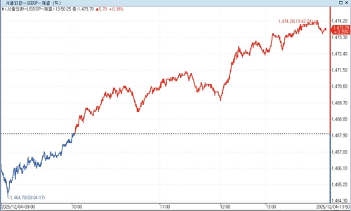 4일 서울 외환시장에서 달러-원 환율은 오후 1시 51분 현재 전장대비 5.70원 오른 1,473.70원에 거래됐다.