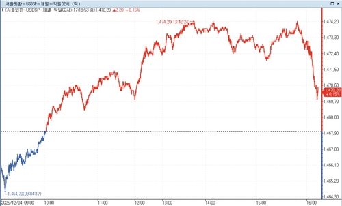 4일 외환시장에 따르면 달러-원 환율은 오후 5시 25분 현재 전장대비 2.10원 오른 1,470.10원에 거래됐다.