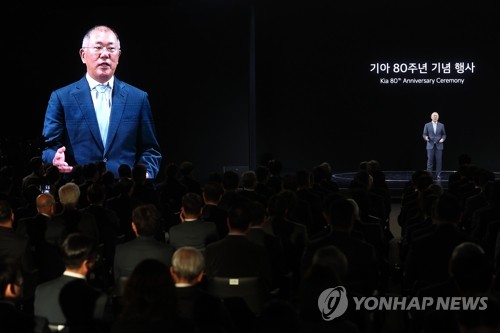 정의선 회장은 이날 경기 용인시 비전스퀘어에서 열린 '기아 창립 80주년' 행사에 참석해 "기아는 한국 산업사에 매우 특별한 회사"라며 "국내 최초로 엔진 국산화를 이룬 기업"이라고 평했다.