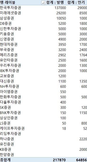 이어 미래에셋증권이 2조9천200억원, 삼성증권이 1조50억원을 발행했다.