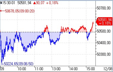 연합인포맥스 세계주가지수(6511)에 따르면 닛케이225 지수는 전 거래일 대비 90.07포인트(0.18%) 오른 50,581.94에 장을 마쳤다.
