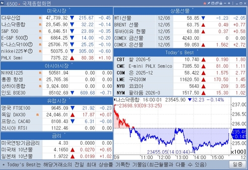 -뉴욕증시 : 다우 0.45%↓ S&P500 0.35%↓ 나스닥 0.14%↓
