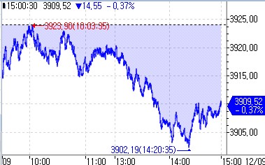 연합인포맥스 세계주가지수(화면번호 6511)에 따르면 이날 상하이종합지수는 전장대비 14.56포인트(0.37%) 하락한 3,909.52에 거래를 마감했다.