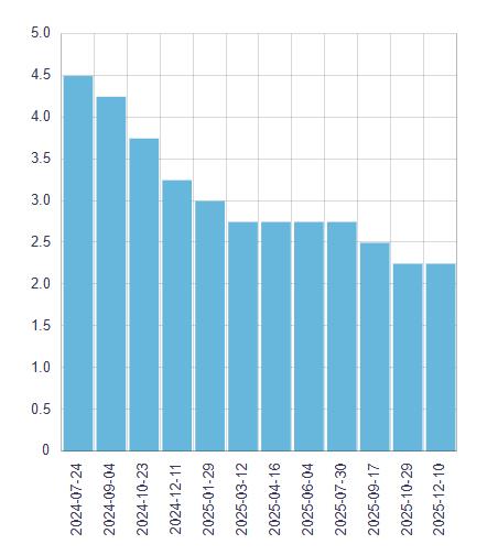 이로써 BOC는 작년 12월 기준금리 3.25%에서 올해 12월 2.25%까지 1년간 기준금리를 1%포인트 내리게 됐다.