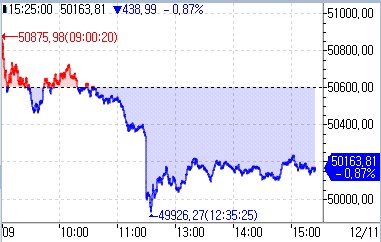 연합인포맥스 세계주가지수(6511)에 따르면 닛케이225 지수는 전 거래일 대비 453.98포인트(0.90%) 내린 50,148.82에 장을 마감했다.