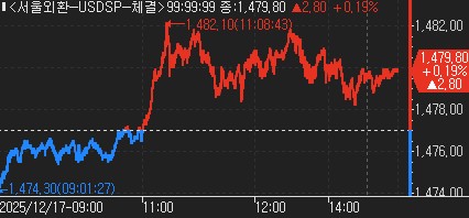 장중 고점은 1,482.10원, 저점은 1,474.30원으로 장중 변동 폭은 7.80원이다.