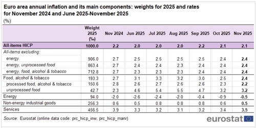 17일(현지시간) 유럽연합(EU) 통계 당국인 유로스타트에 따르면 11월 CPI 확정치는 지난해 같은 기간보다 2.1% 올랐다. 예비치(2.2%)와 시장 전망치(2.2%)를 소폭 하회했다.
