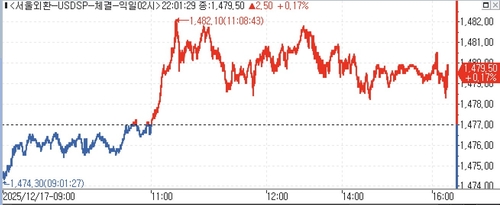 이날 달러-원 환율은 전날보다 2.80원 오른 1,479.80원에 정규장 거래를 마쳤다.