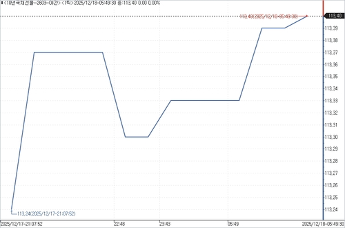 18일 서울채권시장에 따르면 3년 국채선물은 야간 거래에서 전일 주간 거래 종가 대비 1틱 오른 105.41에 마감됐다. 외국인은 39계약 순매도했고, 개인은 39계약 순매수했다.