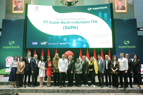 (서울=연합인포맥스) 한상민 기자 = 카카오뱅크의 첫 글로벌 투자처인 인도네시아 디지털은행 '슈퍼뱅크'(Superbank)가 인도네시아 증권거래소(IDX)에 상장됐다.