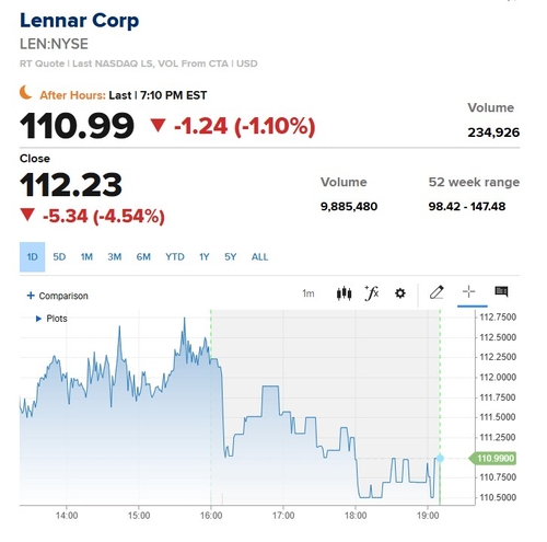 (서울=연합인포맥스) 이장원 선임기자 = 미국 대형 주택건설업체 레나(NYS:LEN) 주가가 내년 1분기 실적 전망(가이던스) 부진으로 인해 4% 하락했다.