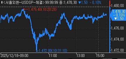 장중 고점은 1,479.40원, 저점은 1,472.00원으로 장중 변동 폭은 7.40원이다.