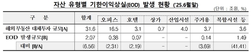 같은 기간 금융사가 투자한 단일 사업장(부동산) 31조6천억원 중 2조700억원에서 기한이익상실(EOD) 사유가 발생했다.