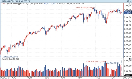 연합인포맥스 지수선물 통합화면(화면번호 6520)에 따르면 한국 시각으로 오전 9시10분 기준 E-미니 S&P500 지수 선물은 전장 대비 0.09% 하락한 6,824.50에 거래됐다.