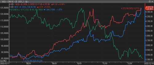 반면 금은 온스당 4천370달러 부근으로 올라 지난 10월 기록한 사상 최고치 부근에서 거래되고 있으며 은 또한 온스당 66달러를 넘기며 사상 최고치를 경신했다. 은 가격은 10월 이후 약 40% 상승했다.