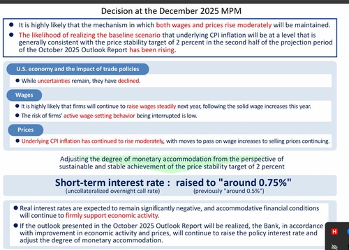 BOJ는 이날 금융정책결정회의에서 단기 금리인 무담보 익일물 콜금리를 기존 0.5%에서 0.75%로 25bp 인상했다고 밝혔다.