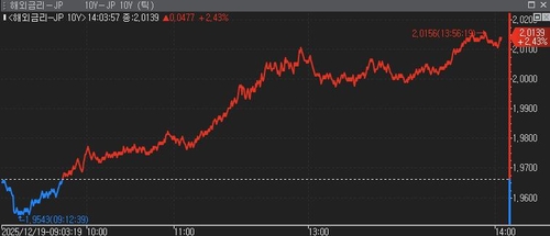 적극적 재정 정책을 표방하는 다카이치 사나에 정권하에서의 재정 악화 우려에 더해, BOJ가 이날 기준금리를 0.5%에서 25bp 인상한 0.75%로 결정하자 채권 금리는 속등했다.