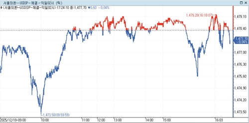 달러-원 환율은 런던장 시간대에 한때 1,479.20원까지 고점을 높였다.